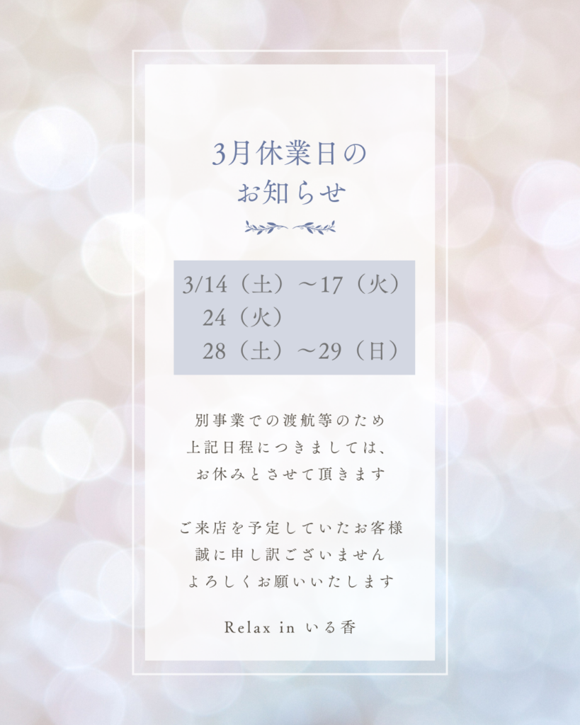 【3月休業日のお知らせ】
